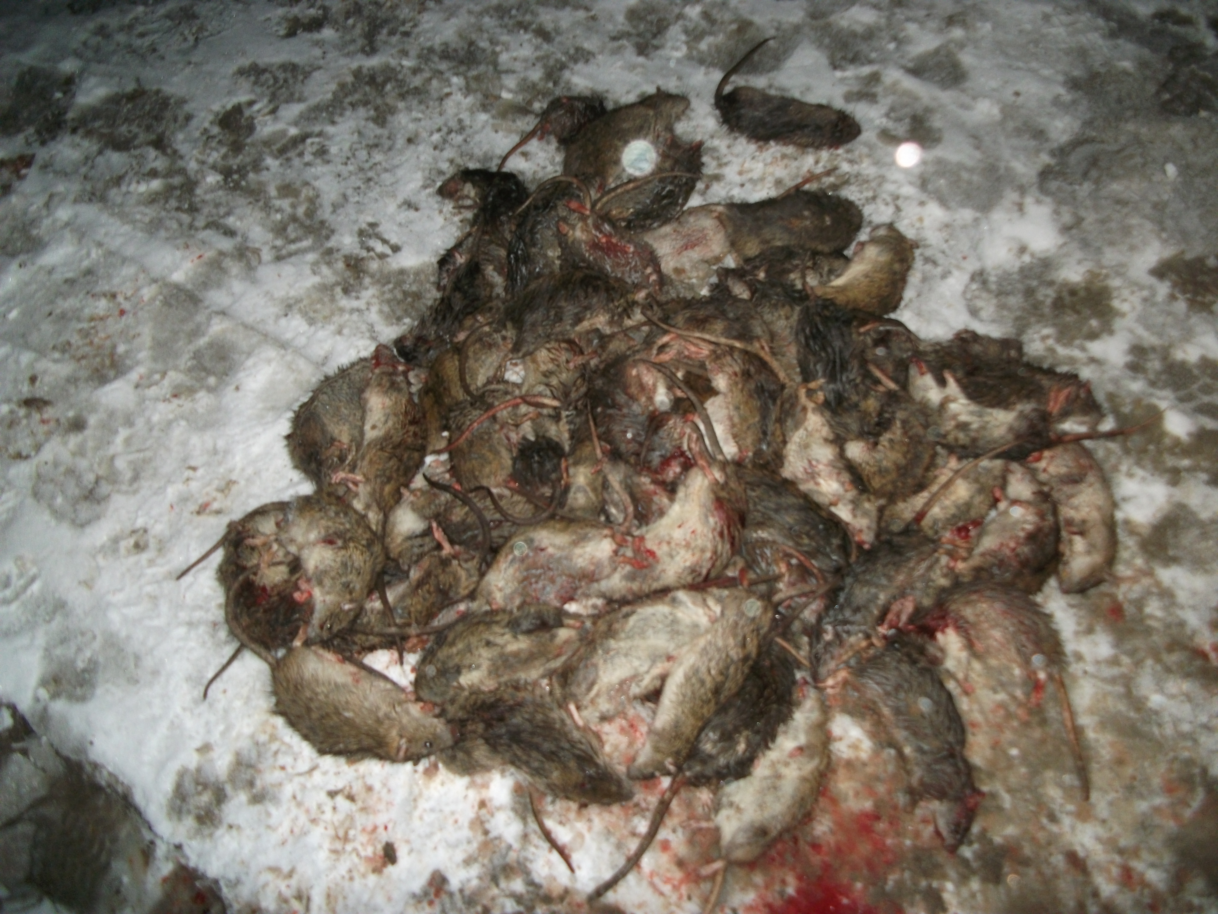 A képeken látható teríték egy eredménytelen mérgezés után. a vadászatot görényekkel és kutyákkal végeztük.